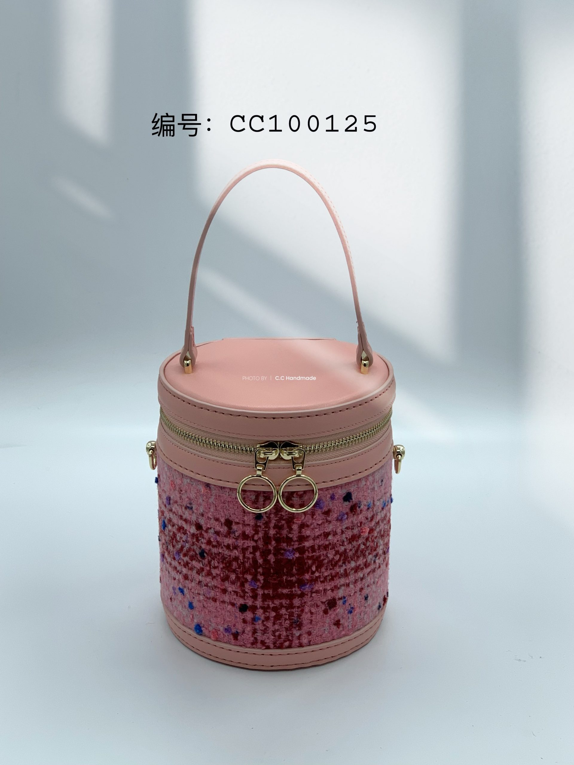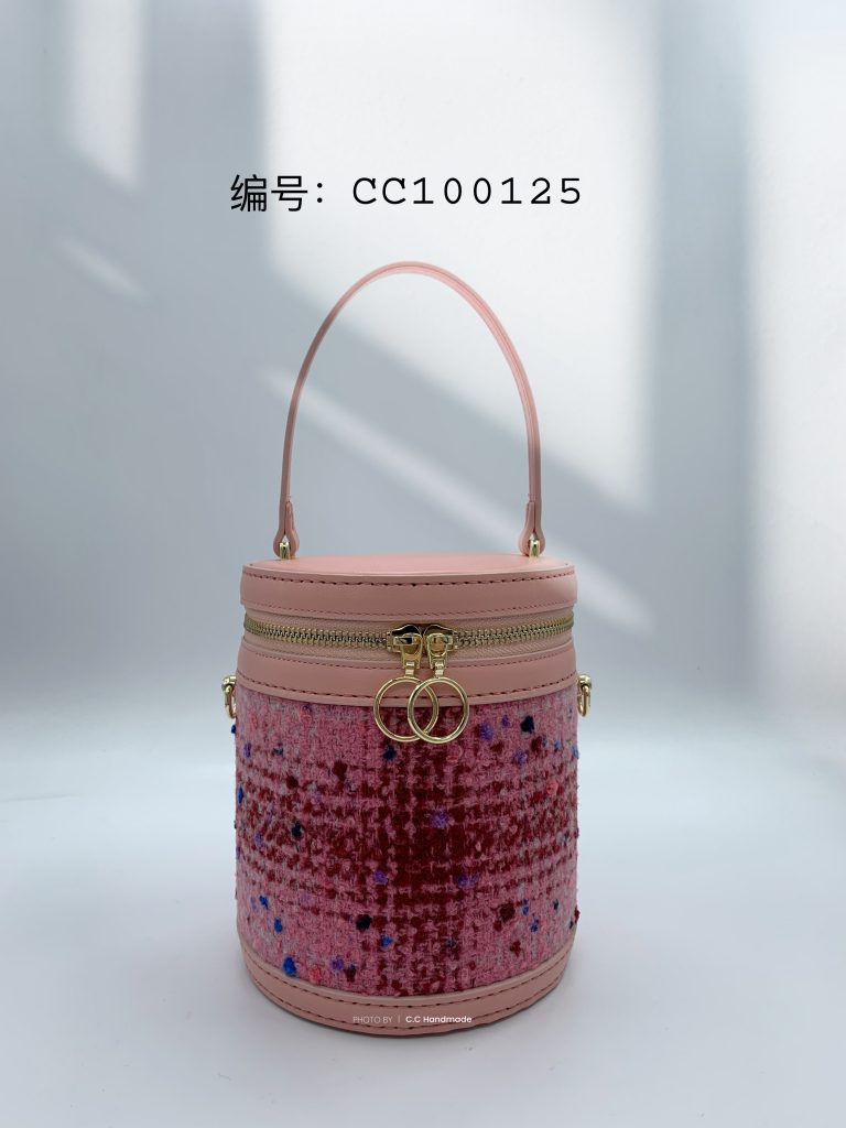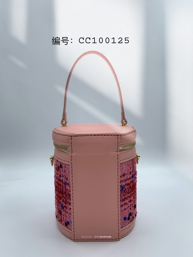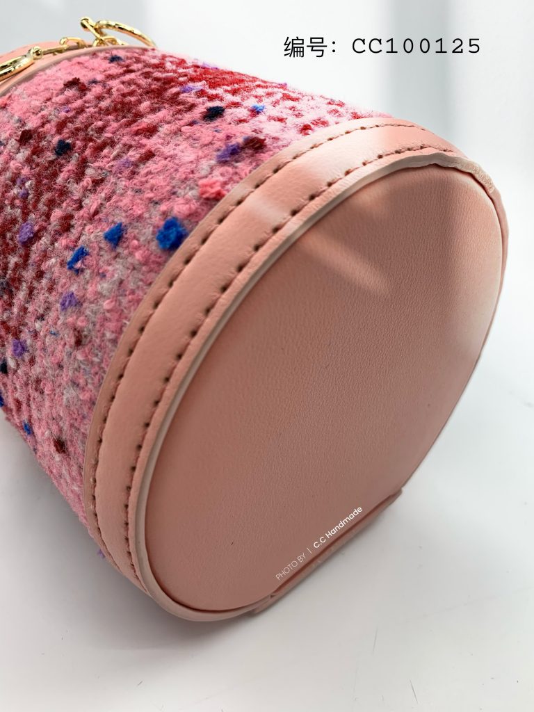 圆筒造型+粉色系花呢小香风+头层皮,包型和用料都很独特,整个包圆润饱满,包身更是硬挺有型