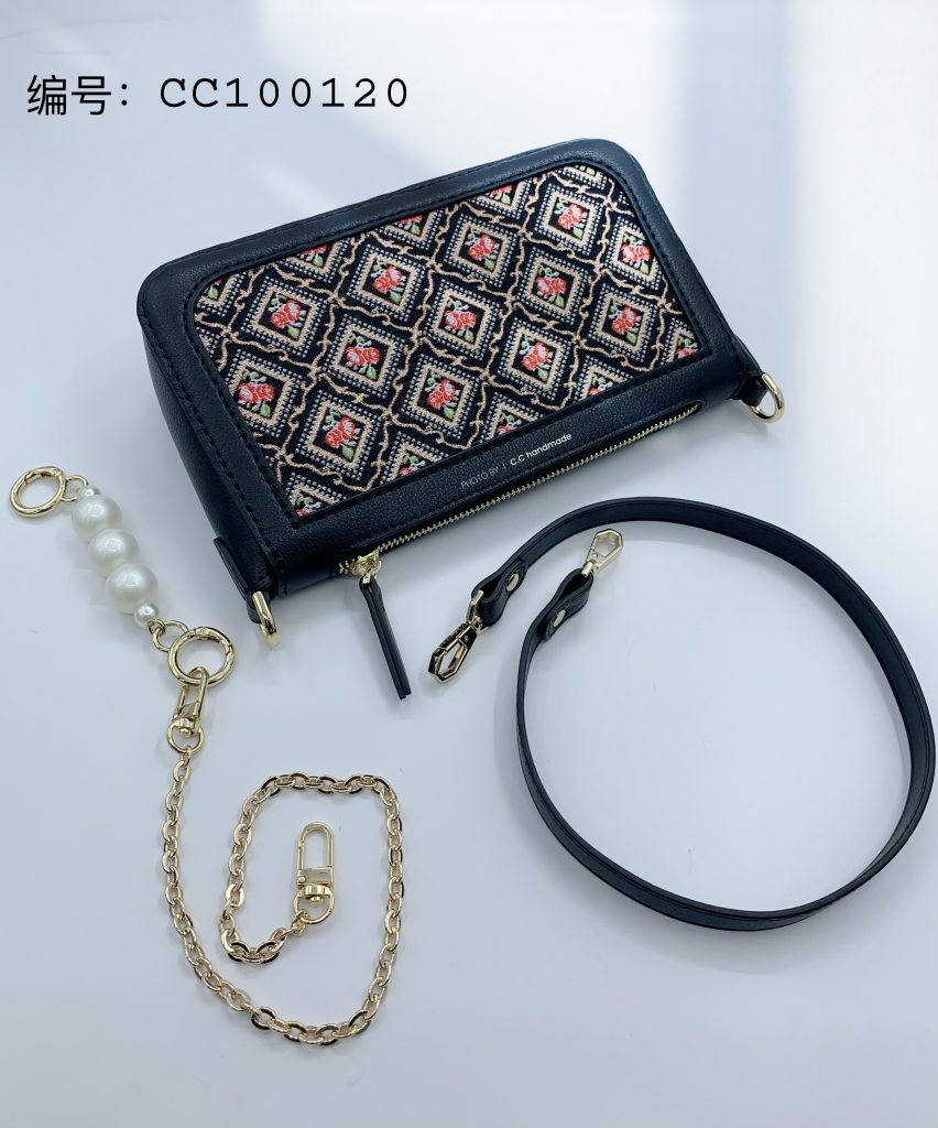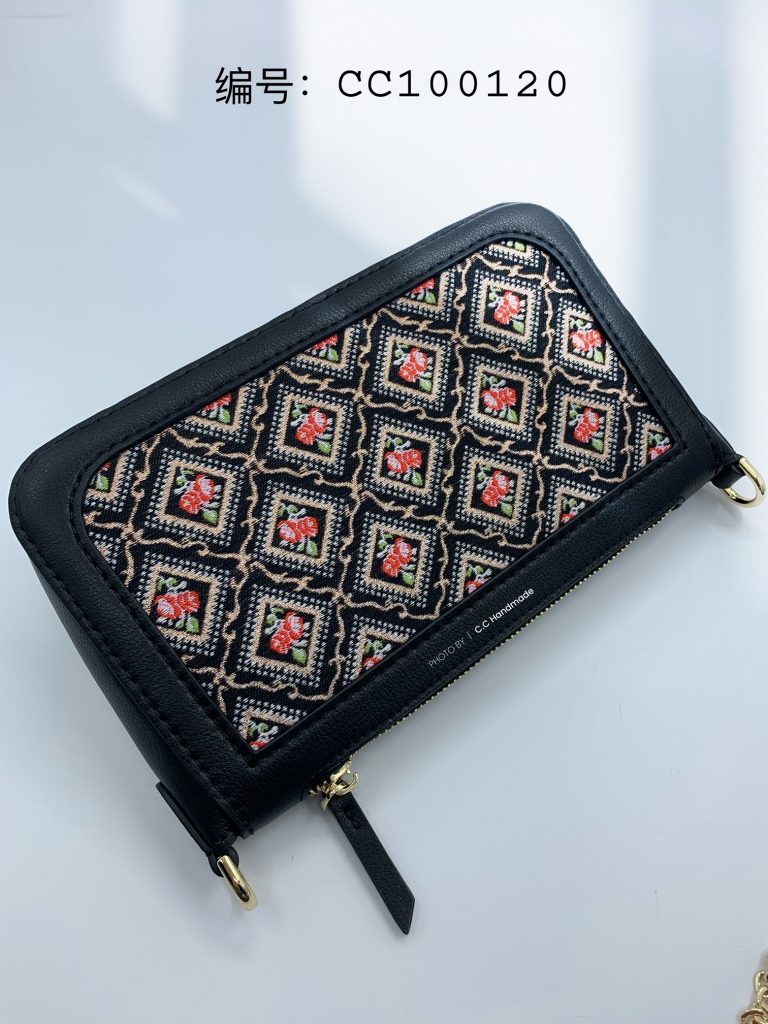外部 :头层牛皮+金丝提花面料、后幅设有1个贴袋 (方便收纳IC/卡片/票据等)、金属拉链作为开合。