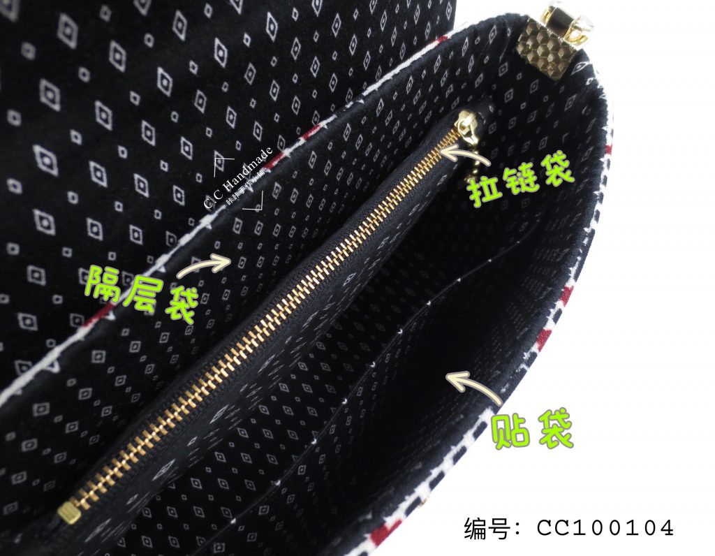 外部 :前幅按锁作为开合、后幅设有1个拉链暗袋。